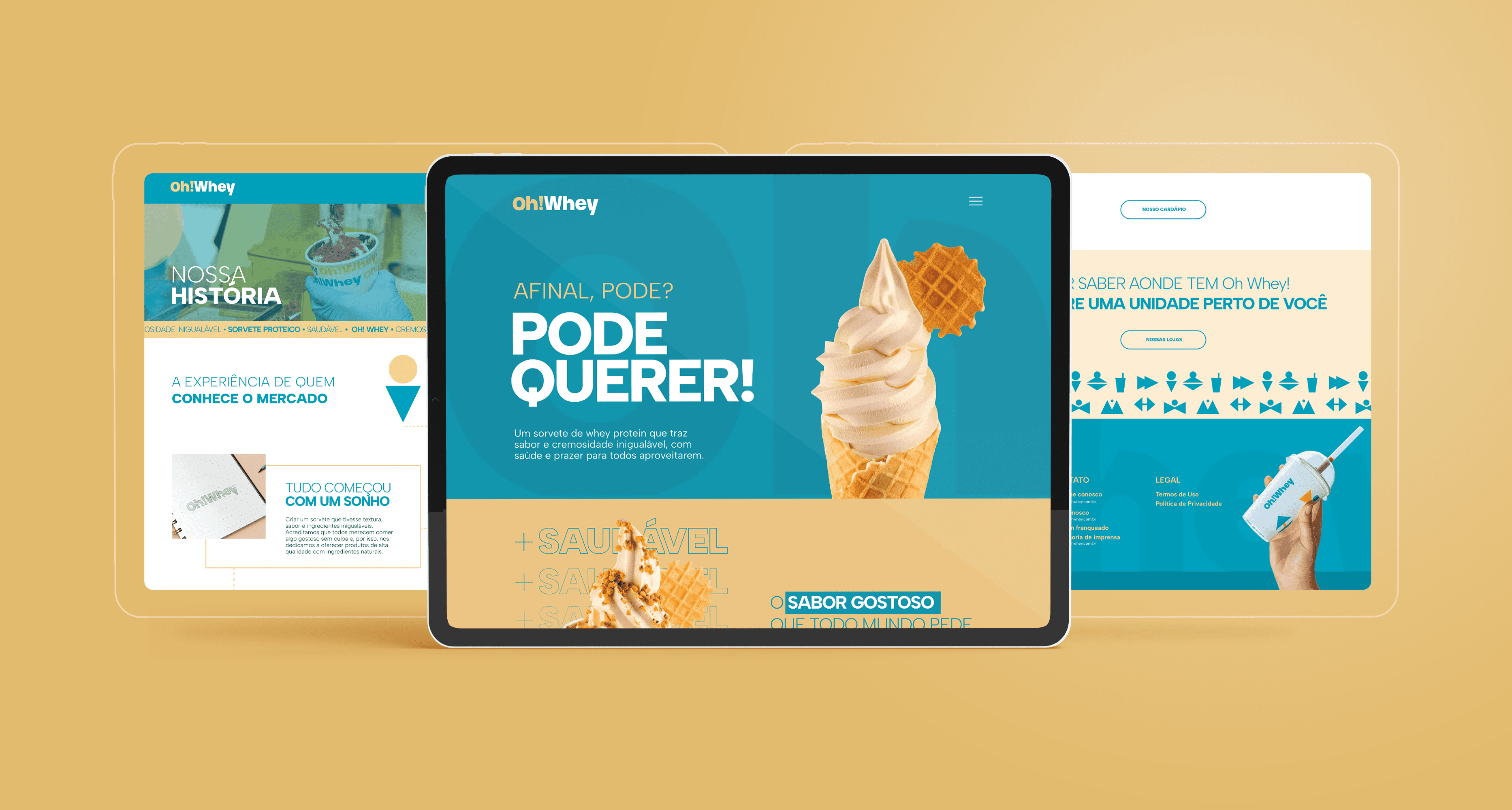 Oh!Whey is a whey protein-based ice cream brand with no added sugars, lactose, or trans fat. Working with the team, I identified the dual challenge: communicating the product to consumers (B2C) while simultaneously attracting franchisees (B2B), all within a cohesive digital experience. The website needed to educate about this new concept, generate desire, and convert across two distinct paths.